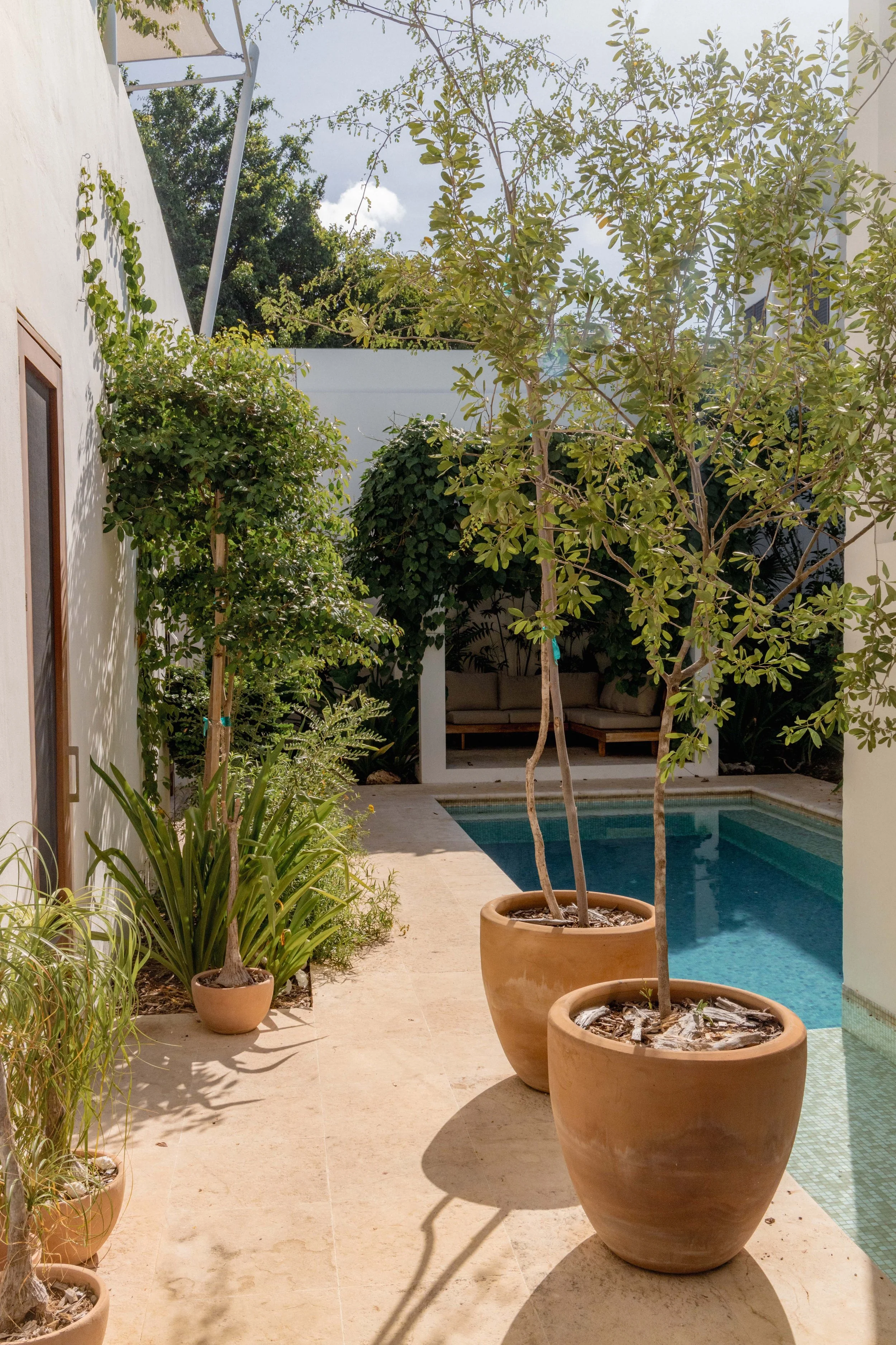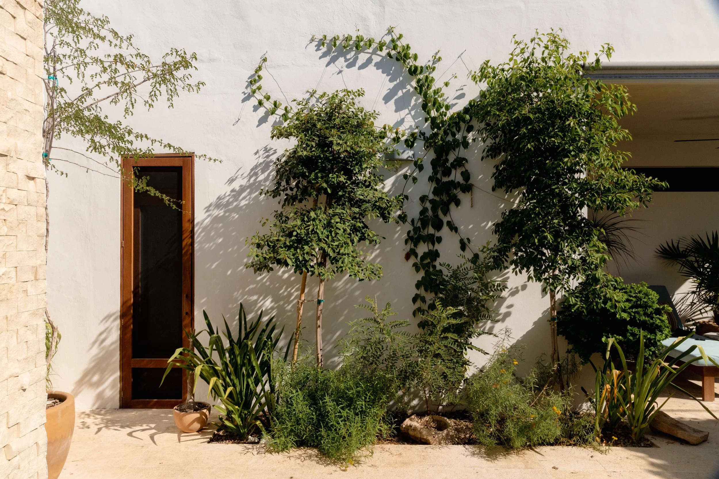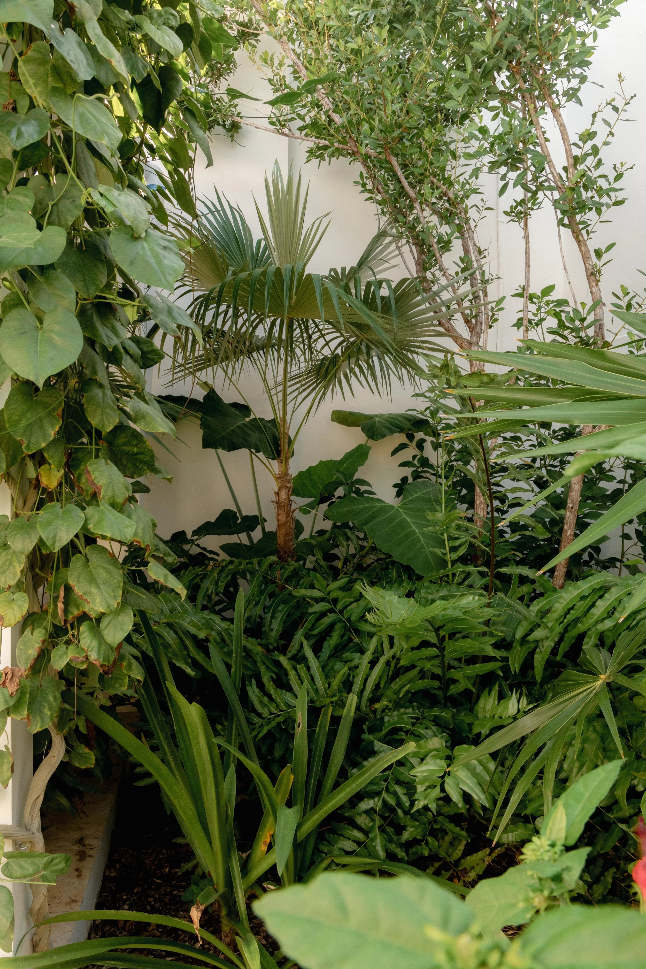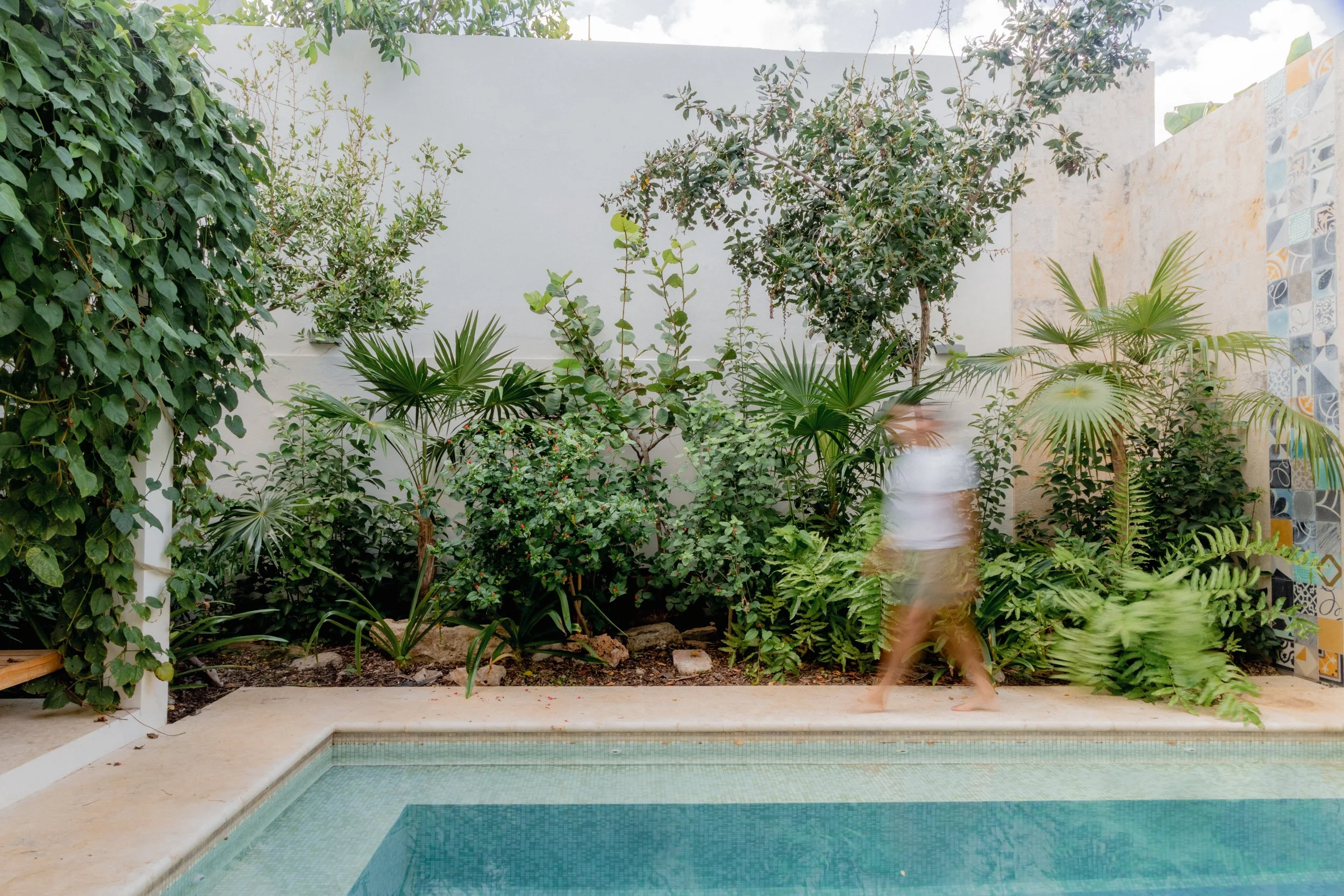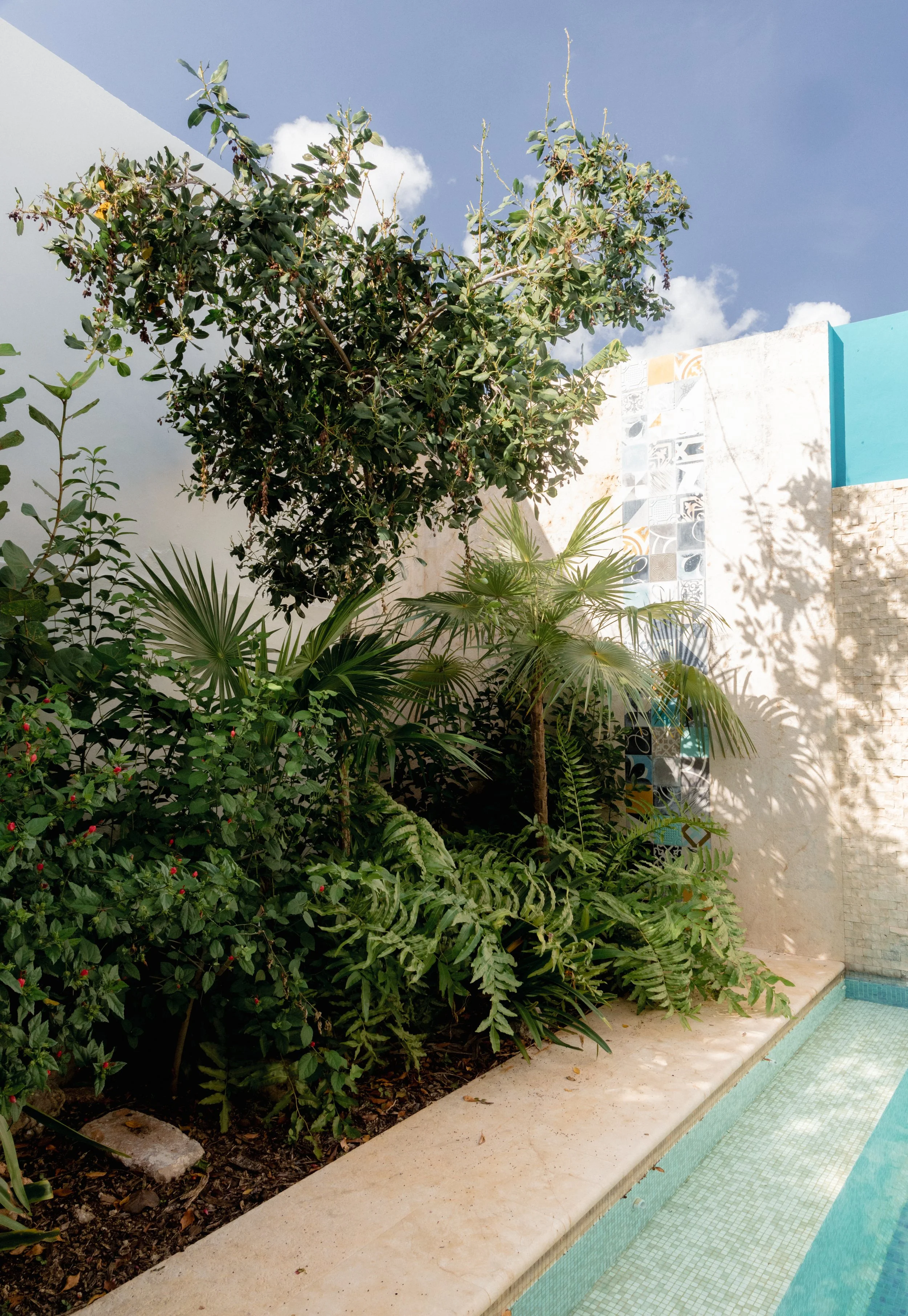 De un espacio donde el jardín yacía subordinado a la arquitectura y cuya selección vegetal respondía a una estética genérica, se transforma en un oasis citadino donde la selección de la paleta vegetal gira en torno al elemento “agua” (la alberca), siendo la costa yucateca el ecosistema de referencia para este nuevo espacio verde.