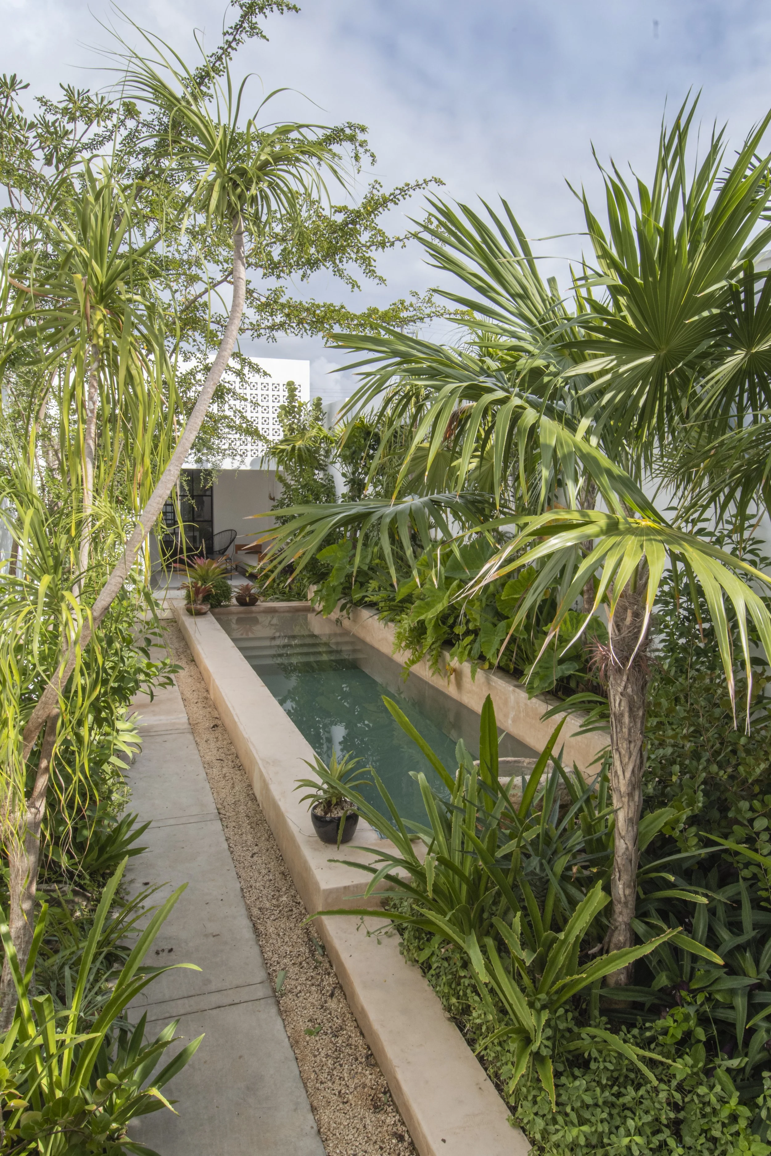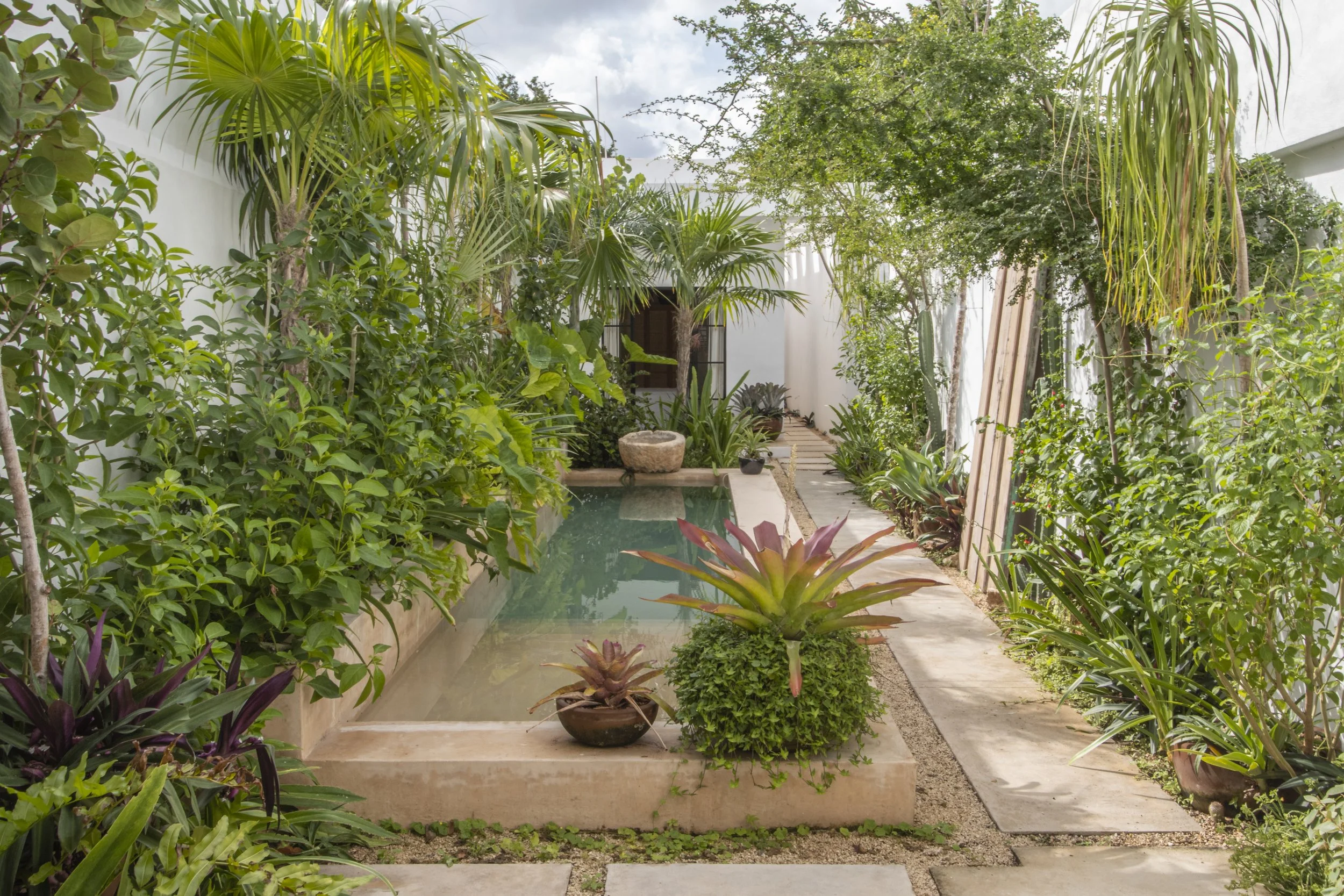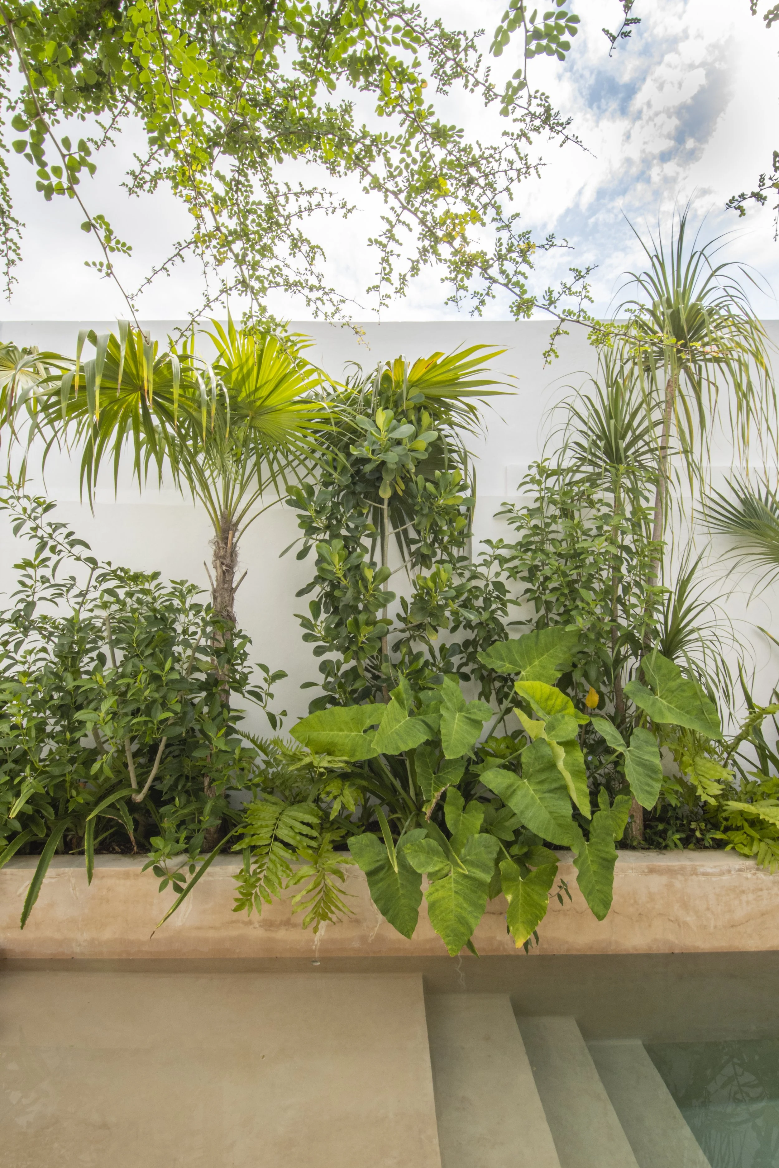 A partir de ese cuerpo de agua, que es una alberca, es como se asoció la vegetación con el entorno; se eligió el tipo de plantas y follajes que mejor se adecúan con los elementos existentes, como humedad, entradas de sol y materiales arquitectónicos que rodean la propiedad para crear contextos que se acercaran más a los ambientes naturales, en este caso, con los de la Península”