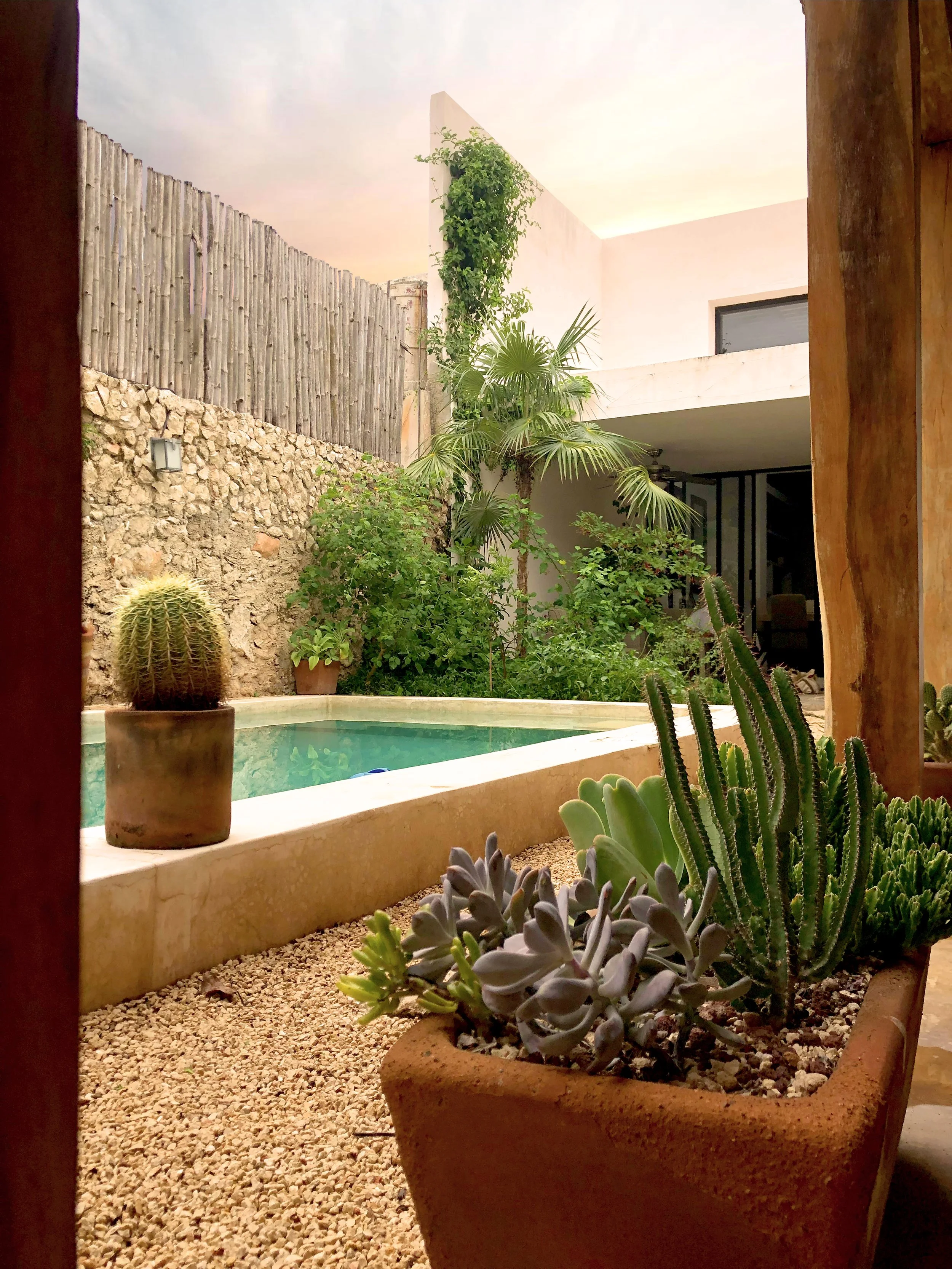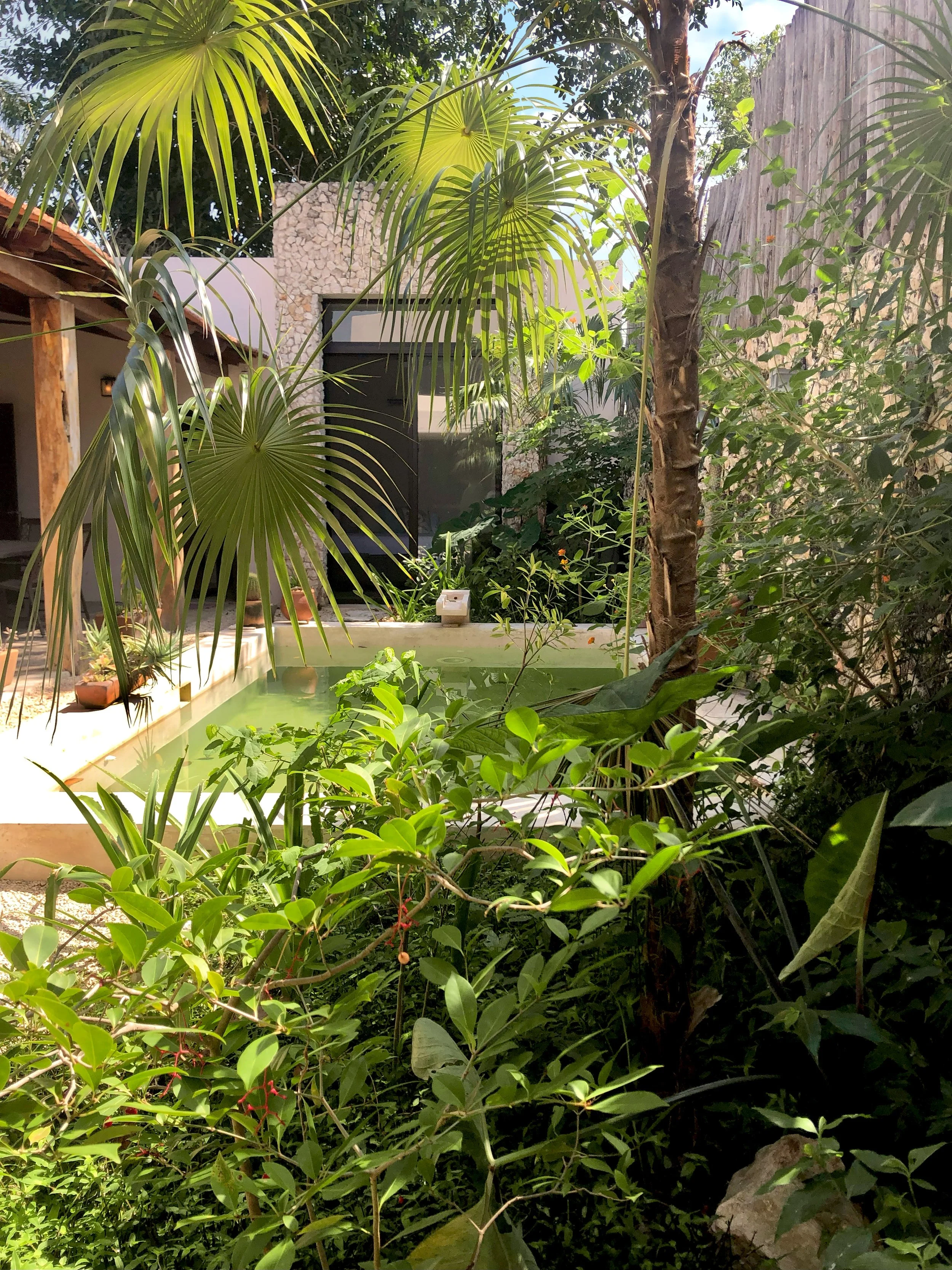 Este es un jardín que se transformó de un espacio cubierto de césped, cuyo mantenimiento es mayor, a un sitio donde la vegetación puede desarrollarse, explotar sus formas y texturas, donde resaltamos el cuerpo de agua (la alberca) y por su puesto, donde disminuimos considerablemente la actividad humana sobre él para su cuidado.